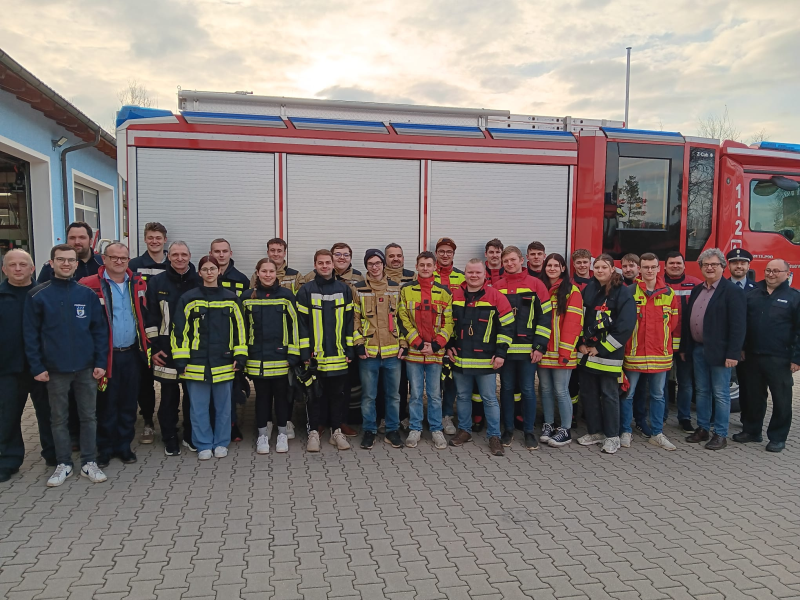 - Gruppenführer Matthias Keilwerth und Jonas Plößner sowie die aktive Mannschaft der FF Pressath rund um den Lehrgang