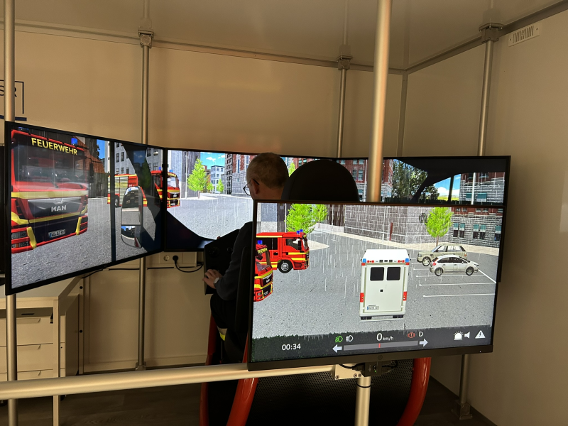 Die Maschinist*innen der Feuerwehren möchten so schnell wie möglich an den Einsatzort kommen. Noch wichtiger ist es jedoch sicher anzukommen und dabei weder sich noch andere Verkehrsteilnehmende zu gefährden. Kritische Situationen sind besonders das Überqueren von roten Ampeln und Überholmanöver, hier besteht die größte Unfallgefahr. Die Teilnehmenden sollen nach dem Training mit dem Einsatzfahrten-Simulator in der Lage sein, solch brisante Situationen durch geübte Fahrstrategien zu bewältigen.