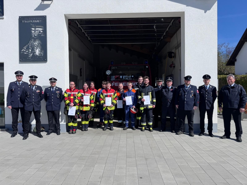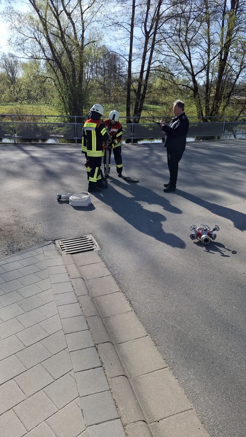 Als Prüfer fungierten die jeweiligen Kommandanten der beteiligten Feuerwehren. Zusätzlich machten sich Kreisbrandmeister für Ausbildung Michael Roith sowie die Kreisbrandmeister Thomas Kleber und Matthias Schmidt vor Ort ein Bild vom Ausbildungsstand der Teilnehmer.