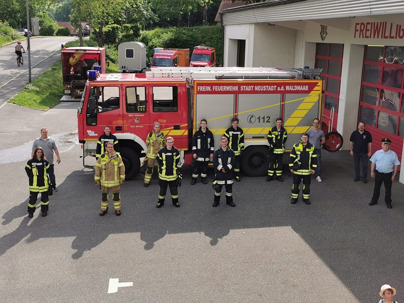 Im Feuerwehrgerätehaus in Neustadt wurden den Teilnehmern, welche aus sieben Feuerwehren stammten, die Grundlagen bei dem Umgang mit den Atemschutzgeräten beigebracht. Bedingt durch die geltenden Vorgaben wurde dieser Lehrgang mit „nur“ zehn statt 24 Teilnehmern abgehalten. Das Team der Ausbilder rund um Lehrgangsleiter Marco Spranger (FF Neustadt/WN) lehrte auch Themen wie „Grundlagen der Atmung“, „Sauerstoffmangel, Atemgifte“, bis hin zu „Aufbau, Einteilung von Atemschutzgeräten“. Nachdem die Grundlagen und Einsatzgrundsätze theoretisch erörtert wurden, erhielten die angehenden Retter das praktische Handwerkszeug. Hier wurden die Handhabung der Geräte geübt, sowie jeder Lehrgangsteilnehmer durch die Ausbilder Jürgen Wolf (FF Schirmitz) und Sebastian Plödt (FF Windischeschenbach) durch einen Hindernisparcours an ihre Belastungsgrenze geführt. Dies ist für die spätere Arbeit wichtig, damit sich diese nicht in ungewollte Gefahr durch Selbstüberschätzung geben. Des Weiteren erhielten die Floriansjünger praktische Einblicke in den Umgang mit dem sogenannten „Schlauchpaket“. Ebenfalls wurden die Notfallrettung von verunfallten Atemschutzgeräteträgern beübt sowie das richtige Begehen von Brandräumen. Es gehört auch ein Durchgang in der Übungsanlage im Atemschutzzentrum Nordoberpfalz in Neuhaus, welches u.a. der Landkreis Neustadt betreibt, zum Ausbildungsinhalt. Den Abschluss des einwöchigen Lehrgangs bildete eine schriftliche Prüfung mit 50 Fragen, sowie die praktische Prüfung, welche als Einsatzübung abgehalten wurde. Diese wird traditionell unter echten Bedingungen durchgeführt, welche die Teilnehmer animiert das Beigebrachte in einer realen Situation abzurufen. Bei dieser Einsatzübung werden die Geräteträger im Löschfahrzeug und der Drehleiter mit Blaulicht und Martinshorn an die „Einsatzstelle“ gefahren und durch einen Gruppenführer truppweise in die Einsatzabläufe eingewiesen. Hier galt es dann zwei Dummys im vernebelten Keller des Gerätehauses zu retten. Alles unter den Augen der Ausbilder und mit höchster Konzentration. Im Nachgang fand durch Kreisbrandinspektor (KBI) Martin Weig die Zeugnisübergabe statt. Da aufgrund der pandemiebedingten Situation die Theorieprüfung nicht mit einem gemeinsamen Abendessen abgeschlossen werden konnte endetet die Ausbildung am 12.06.2021 bereits einen Tag früher. Bei den Abschlussworten dankten KBI Weig und Lehrgangsleiter Spranger den Teilnehmern für die konsequente Umsetzung des Hygienekonzeptes und wünschten viel Erfolg bei der neuen Tätigkeit innerhalb ihrer Feuerwehren. Es waren sich alle einig, dass trotz der Einschränkungen der Lehrbetrieb nicht beeinträchtigt war, was die guten Ergebnisse der Prüfungen widerspielte.