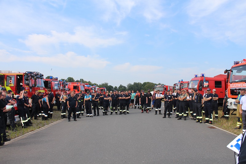 Nun heißt es aufsitzen auf die Fahrzeuge, um 10:30 verlässt das Mehrzweckfahrzeug (MZF) der Feuerwehr Windischeschenbach mit Kontingentführer KBR Marco Saller und Führungsassistent KBM Christian Demleitner sowie dem Windischeschenbacher Kommandanten André Stessmann an Bord das Gelände als Führungsfahrzeug des Kontingents, gefolgt vom restlichen Konvoi. Dabei sind die Fahrzeuge der folgenden Feuerwehren: Altenstadt/WN, Schirmitz, Moosbach, Floß, Kirchenthumbach, Vohenstrauß, Störnstein, Weiden, Pleystein, Waldthurn, Grafenwöhr, Etzenricht, Luhe, Oberwildenau, Eschenbach sowie die Unterstützungsgruppe „Örtliche Einsatzleitung“ UG-ÖEL des Landkreise Neustadt/WN. Das Abschlussfahrzeug ist, im Gegensatz zu den anderen 20 Feuerwehrfahrzeugen, die mit insgesamt 100 Feuerwehrkräften besetzt sind, weiß lackiert und kommt vom BRK-Kreisverband Weiden/Neustadt. Es ist der KTW zur Absicherung der eigenen Kräfte, besetzt ist er mit zwei Mann. Eine Schnelleinsatzgruppe Verpflegung wird sich dem Kontingent im Verlauf der Fahrt noch mit anschließen. Ziel der Fahrt ist der Flugplatz der Heeresflieger in Mendig im rheinland-pfälzischen Landkreis Mayen-Koblenz, wo unser Kontingent ihr Lager aufschlagen wird und von da aus die einzelnen konkreten Einsatzaufträge erhalten wird. Diese sollen auch schon morgen, Sonntag, den 25. Juli 2021 starten. Der letzte „Arbeitstag“ soll der 27. Juli sein, der Rückmarsch ist für den 28. Juli 2021 geplant.