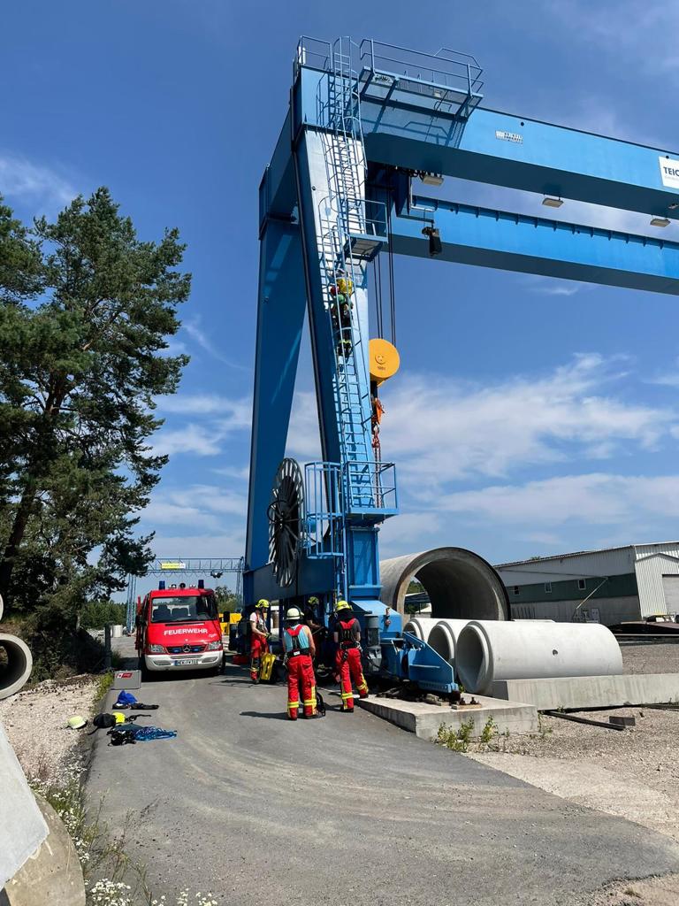 Das Ausbilderteam um Marco Arnold (3. Kommandant FF Grafenwöhr) und Christian Müller (2. Kommandant FF Gößenreuth) brachten in zwei Abendveranstaltungen sowie zwei vollen Samstagen den Teilnehmern die Grundlagen der Absturzsicherung in Theorie und Praxis ausführlich näher. Inhalte wie Knotenkunde, Halten und Rückhalten und die Sicherung in absturzgefährdeten Bereichen wurden erörtert und praktisch geübt. Ein besonderes Highlight stellte die abschließende Einsatzübung bei der Firma HABA-Beton in Mantel dar, bei welcher eine hilflose Person von einem ca. 15 Meter hohen Lastenkran gerettet werden musste. Bei dem simulierten Szenario konnten alle Teilnehmer ihr neu erworbenes Wissen in vollem Umfang zum Einsatz bringen.