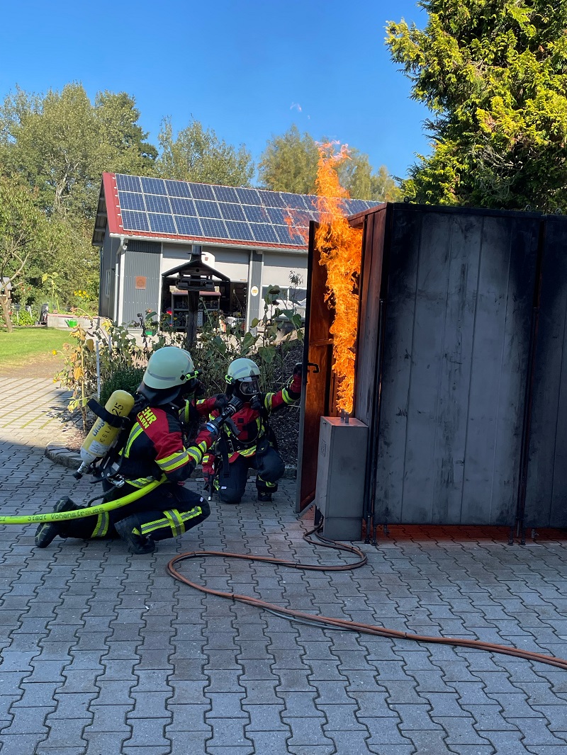 Der praktische Teil startet zuerst mit einer Gewöhnungsübung mit Filter, später dann die Eingewöhnung unter Pressluftatmer. In der Atemschutzübungsanlage des Landkreises in Neuhaus wird dann jedem Teilnehmenden eine Belastungsübung abverlangt, dazu gehören z.B. Laufband, Endlosleiter, Fahrrad sowie der Durchgang durch die Kriechstrecke. In Vohenstrauß werden dann bei verschiedenen Szenarien das richtige Vorgehen im Brandfall sowie die Personenrettung geübt. Bei der Abschlussübung muss dann zunächst ein Brand in der gasbetriebenen Flash-Box gelöscht werden und in den verrauchten Kellerräumen des Feuerwehrhauses eine Personenrettung durchgeführt werden.