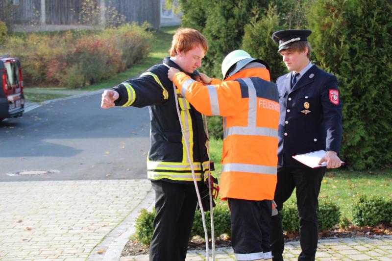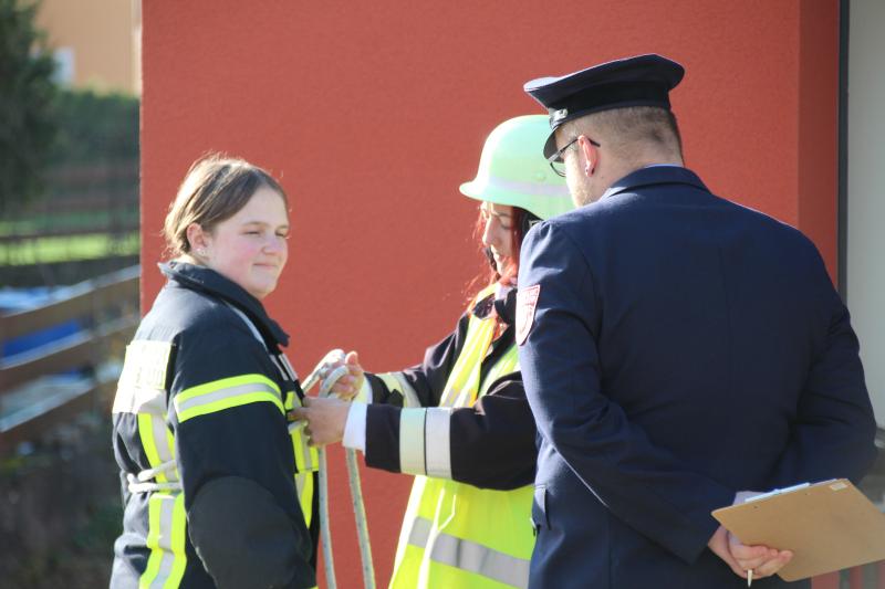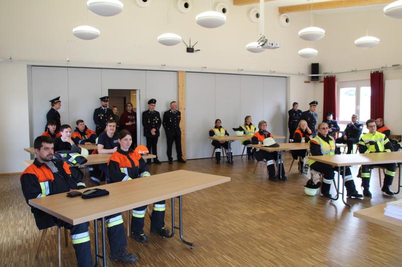 Unter den Augen von KBM Andreas Götz, KBM Jürgen Haider und der Ausbilder und Kommandanten der teilnehmenden Wehren bestanden alle Teilnehmer die Prüfung zum Truppmann.