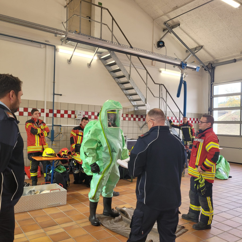 Am Samstag, den 04.11.2023, trafen elf Kameraden aus dem westlichen Landkreis Neustadt an der Waldnaab am Pressather Gerätehaus ein, um hier die Ausbildung zum "Träger von Chemikalienschutzanzügen" (CSA) zu absolvieren.